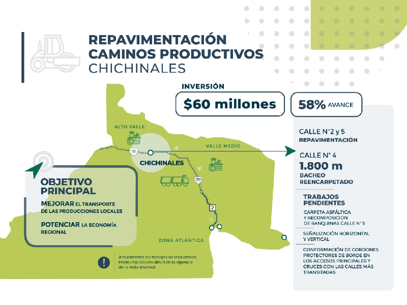 En el caso de Chichinales, el objetivo principal es contribuir a una mejora en términos de seguridad y transporte de producciones locales y potenciar la economía regional.